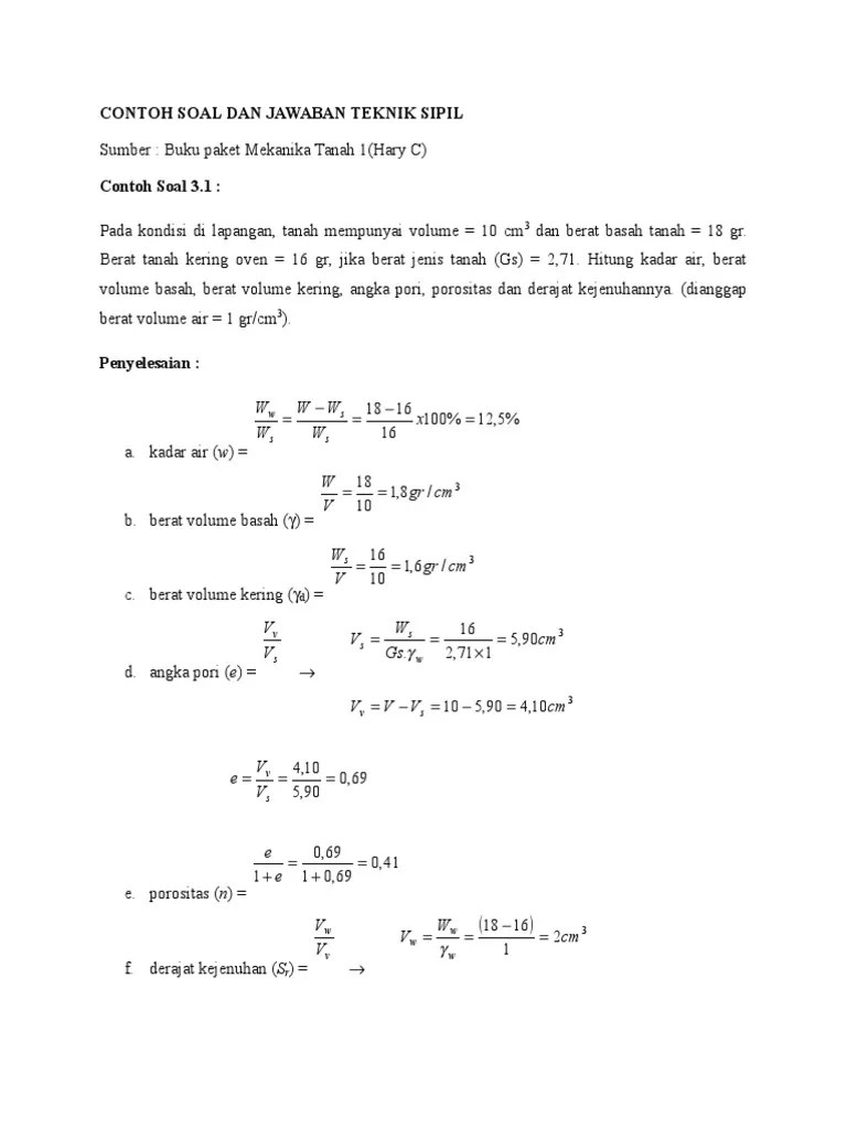 soal tes kemampuan bidang hukum pdf. Download soal cpns kemenkumham pdf kanal jabar. Formasi pranata komputer praktek 2 5. contoh soal tes cpns departemen pu 2019 kuya06 contoh soal tes tkb teknik sipil 16 11 2019 bidang sipil sendiri terbagi atas 3 sub lagi yaitu konstruksi transportasi dan air untuk soal tes bidang ketiga sub tersebut akan dijadikan satu yang berarti untuk masing sub akan mendapat soal tentang konstruksi transportasi dan air secara umum tes. Berat tanah kering oven 16 gr jika berat jenis tanah gs 271. We don't owned or create all the video that posted here. Buku paket mekanika tanah 1 hary c contoh soal 31. Fakta menunjukan bahwa banyak peserta yang gagal dalam tes penerimaan calon pegawai negeri sipil (cpns) walaupun sebenarnya mereka mempunyai bakat dan potensi dan memenuhi standar. Tulisan ini merupakan lanjutan dari tulisan sebelumnya, yaitu contoh soal tes kompetensi bidang (tkb) teknik informatika dan pembahasannya. Berikut, 50 contoh soal cpns tes kemampuan bidang ( tkb) pendidikan beserta kunci kemudian pada seleksi cpns tahun 2018 sedikit berganti nama menjadi seleksi kompetensi bidang atau untuk contoh soal bidang lainnya, seperti teknik sipil, keuangan, bidan, perawat, jaksa. contoh latihan soal cpns tes kemampuan bidang tkb contoh soal tes tkb teknik sipil berikut ini merupakan contoh latihan soal cpns online tes kemampuan bidang tkb keguruan semoga bermanfaat latihan cpns online 1 klik disini latihan cpns contoh soal psikotes pt kimia farma tbk tahun 2019 sumber. contoh soal tes masuk universitas jurusan teknik sipil berbagi contoh soal. Situs berita pendidikan lomba loker soal jawaban pembahasan ksn ksm usbn unbk unkp sd smp sma onmipa sertifikasi gaji guru cpns 2019 2020 2021.